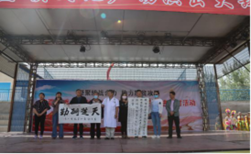5月30日,西夏区委日博best365下载_中信精彩365_365bet平台官网联合西夏区工商联,组织各民主党派、非公经济人士、西夏区知联会、宁夏大学知联会40余名成员在镇北堡镇举办助力脱贫攻坚暨文艺扶贫进乡村活动,西夏区文化旅游体育广电局的40名演职人员为镇北堡镇贫困群众送去了一场文化大餐。民革、民盟西夏区支部也积极参与到送演队伍中来,民革西夏区支部主委、西夏区诗词学会负责人余秀玲同志代表各民主党派向镇北堡镇赠送了天道酬勤的书法作品。